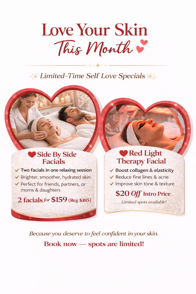 *Side by sides facials available for an additional $10 each *